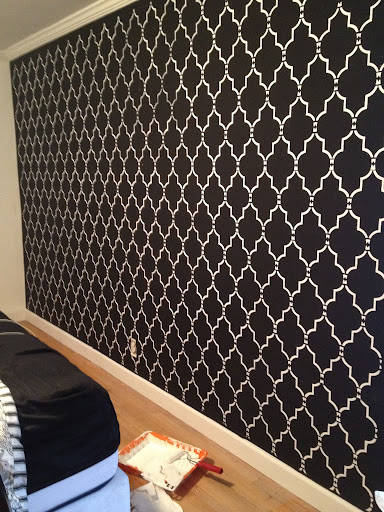 My Black And White Room Black Wall White Painted Stencil Cuttingedgestencils Com Really Easy Trending Decor Stencils Wall Home Decor Trends